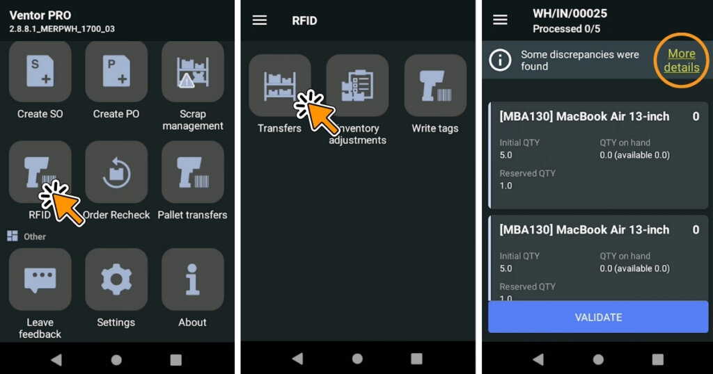 If suppliers do not provide RFID tags, you can easily generate and encode them using the Ventor mobile application.