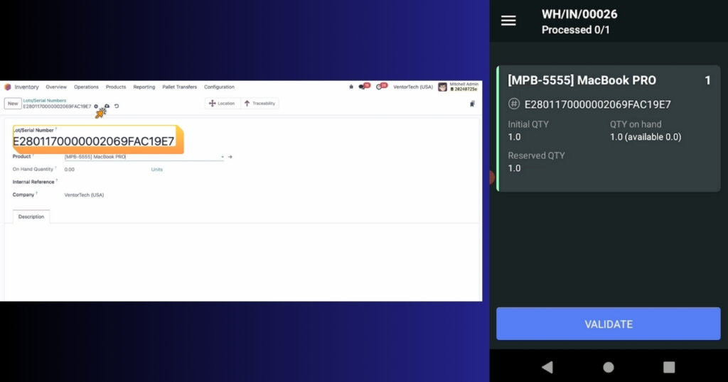 - Copy the EPC value and paste it into the Serial Number field of the corresponding product in Odoo.